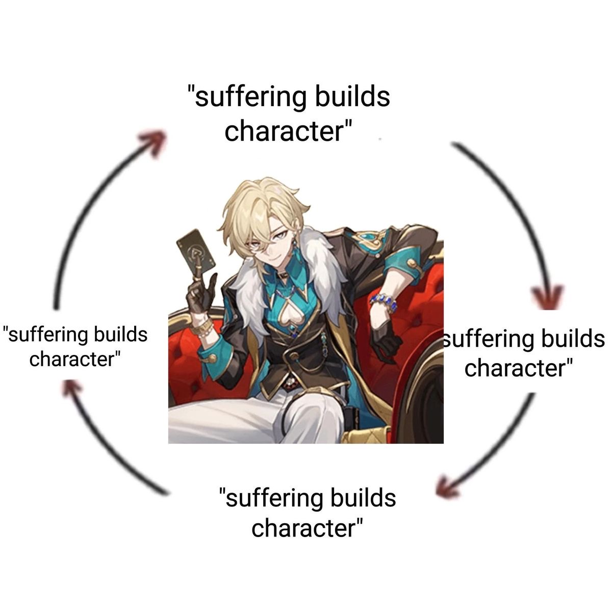 Character considerations: i'm back on my hoyo man bullshit, i'm so sorry. it's adventuretime from honksis trails to the sky